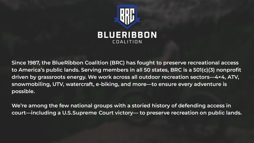 For over 30 years the BlueRibbon Coalition has been defending your adventures. If you enjoy recreating on public land we are fighting for you. We've won pivotal legal battles. We maintain a constant presence of grassroots advocacy, and with over 700,000 represented members, we are one of the strongest voices defending outdoor recreation. And we're just getting started.