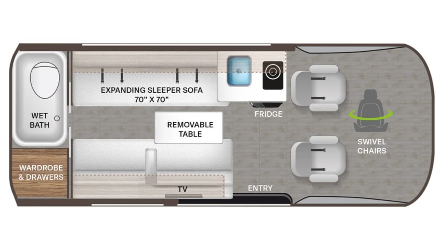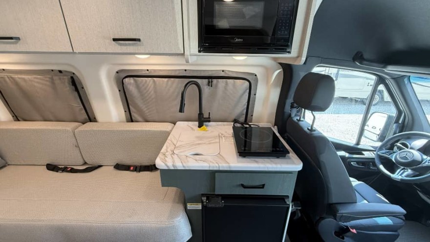 This isn't a cramped camper from the '90s. Built on the legendary Mercedes-Benz Sprinter chassis, the Thor Eddie Bauer 19EU is a fully loaded Class B motorhome designed for comfort, durability, and serious off-grid capability. Inside, you'll find a cozy queen bed, a fully equipped kitchen with cooktop, sink, and refrigerator, and a flexible living space that works for morning yoga, remote work, or a rainy-day card game. The central control system puts power, climate, lighting, and your powered awning at your fingertips. Outside, the premium Mercedes-Benz cab delivers a smooth ride with advanced safety features, so getting there is just as enjoyable as being there.