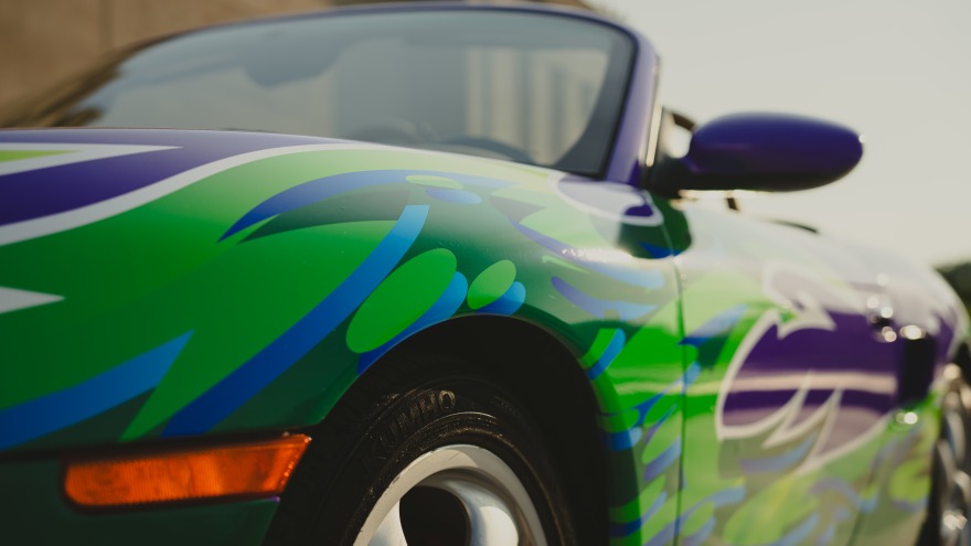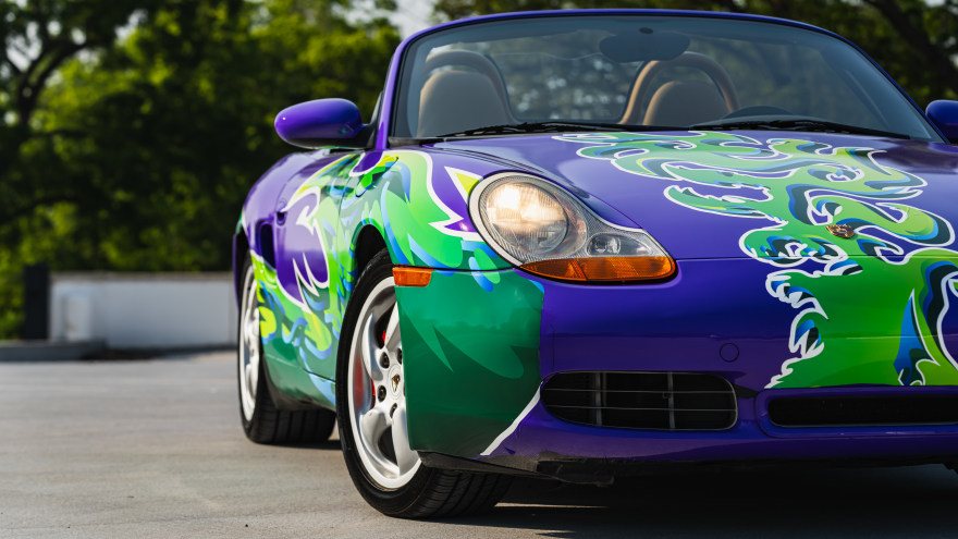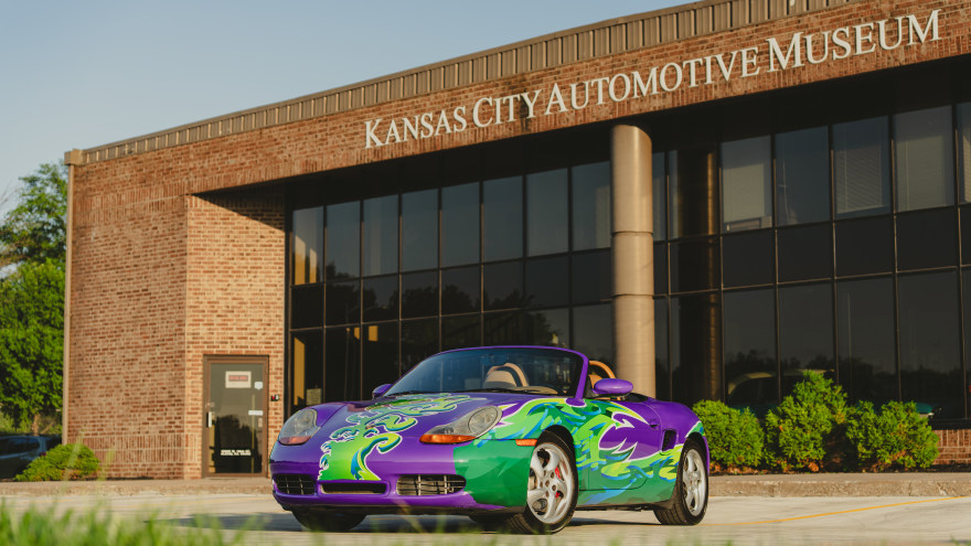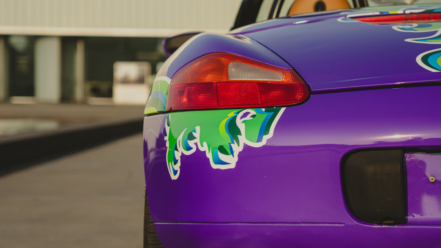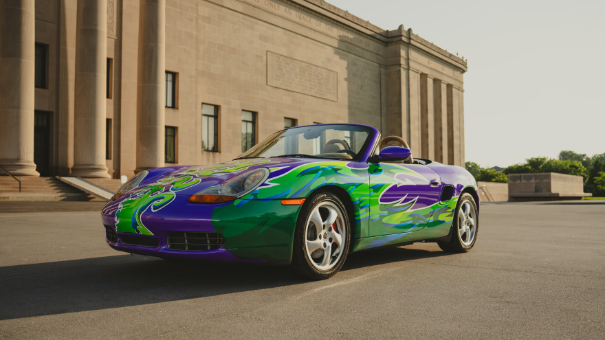 This 2001 "Hippie" Porsche Boxster S has been transformed into a rolling canvas through a unique program called "The Art Car" founded in 2017 by the Kansas City Automotive Museum. The Art Car program partners with local school districts and gives the opportunity for students of various disciplines to collaborate on a vehicle through mechanical reconditioning and exterior design. This art car was transformed by the students at Shawnee Mission East High School along with automotive experts. The final wrap design, vibrant, bold, and unmistakably Porsche.