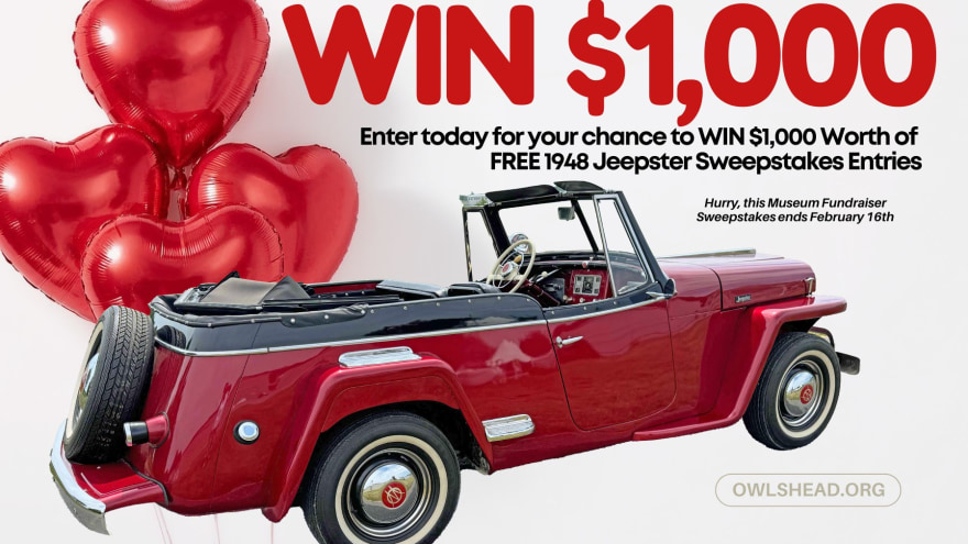 Don’t miss your chance to win a piece of true Americana—a classic convertible perfect for summer drives, car shows, or just turning heads on Main Street. Enter now and make this Willys Jeepster yours!