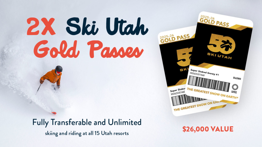 It’s back—and bigger than ever! The Super Stoked Snowy Sweepstakes isn’t just about winning a prize; it’s about unlocking the ultimate Utah winter. This year’s grand package is stacked: heli-skiing for two, TWO Ski Utah Gold Passes (that’s unlimited skiing all season long), a three-night getaway at the brand-new Inn at Sundance Mountain Resort complete with dinner, an art class, and a zip line tour, a private suite for 12 at the Utah Mammoth vs. Colorado hockey game hosted by Delta Air Lines, two full Stio outerwear kits, and a $2,500 Rossignol shopping spree. With nearly $45,000 in experiences, gear, and access, this prize sets you up for a season you’ll never forget.