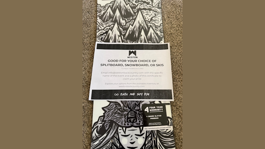Your choice of Weston Skis or a Splitboard (non‑carbon)